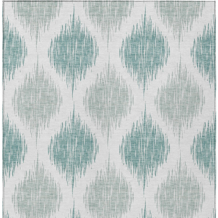This 10-foot x 14-foot aqua teal blue and ivory ikat washable indoor outdoor area rug, is a great way to add warmth to a room. This rectangle shaped rug features a ikat design that will work well both indoors or out. A classic shape marries with good looking design for your living room, hall, bedroom, porch, patio, or poolside. Ideal for outdoor spaces or high traffic areas with kids and pets, this rug is made from heavy duty polyester that is stain resistant to help repel water, dirt, and stains. Versatile in use, durable, and easy to maintain, this rug is an ideal solution to add a decorative and inviting touch to your indoor or outdoor space. 120-inch h x 168-inch w x 0.19-inch d.
