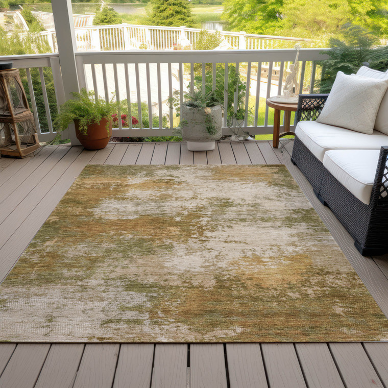 This 10-foot x 14-foot copper and ivory abstract washable indoor outdoor area rug, is a great way to add warmth to a room. This rectangle shaped rug features a abstract design that will work well both indoors or out. A classic shape marries with good looking design for your living room, hall, bedroom, porch, patio, or poolside. Ideal for outdoor spaces or high traffic areas with kids and pets, this rug is made from heavy duty polyester that is stain resistant to help repel water, dirt, and stains. Versatile in use, durable, and easy to maintain, this rug is an ideal solution to add a decorative and inviting touch to your indoor or outdoor space. 120-inch h x 168-inch w x 0.19-inch d.