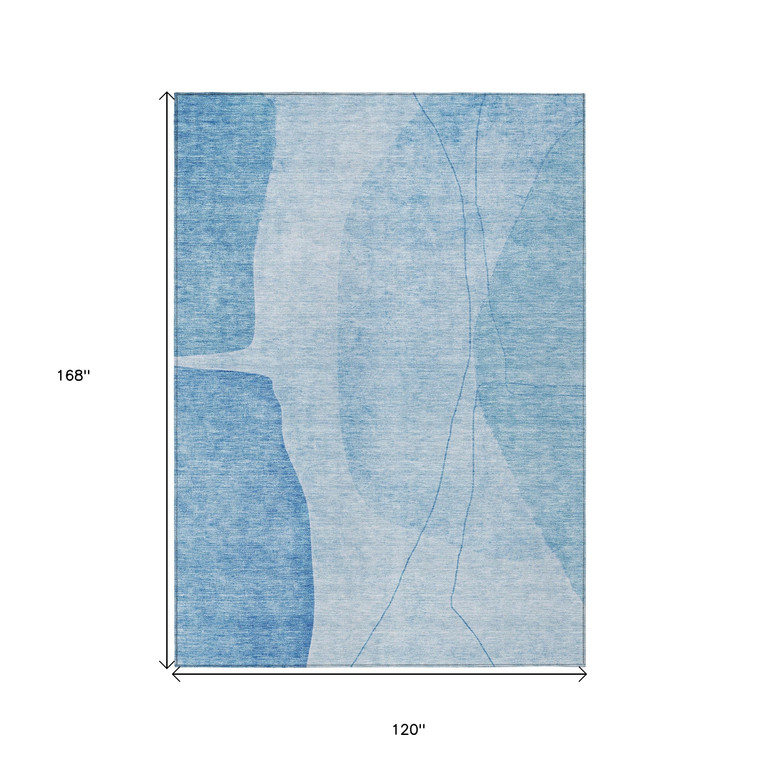 10' X 14' Denim Blue And Sky Blue Abstract Washable Indoor Outdoor Area Rug - 606114952305