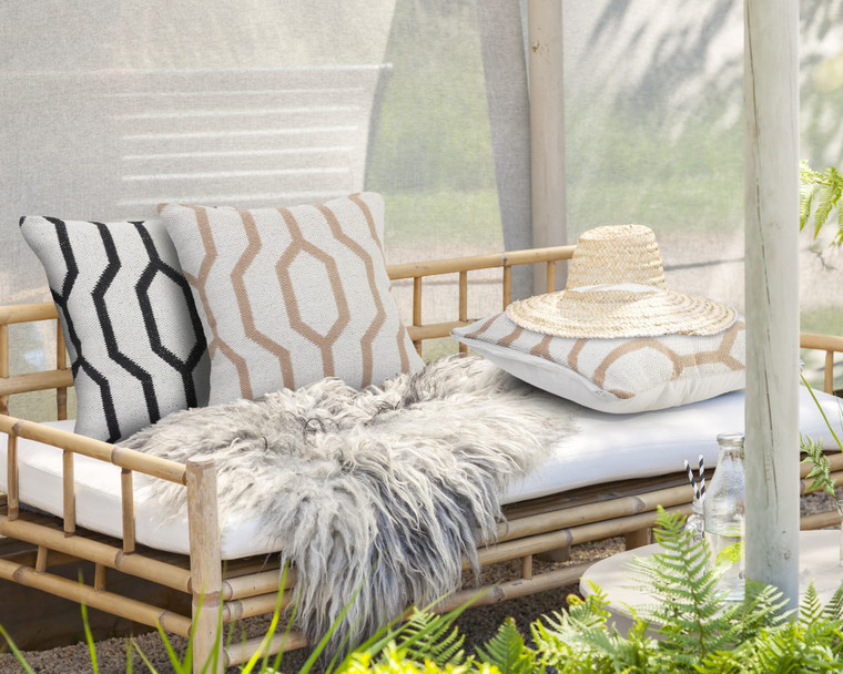 The perfect complement to your sofa, favorite chair, or bed, this 20" x 20" white and tan 100% cotton geometric zippered pillow is a great decorative accent. The white and tan coloring of the soft and long lasting 100% cotton will add dimension and texture to your space. Great to use on its own or mix with other decorations for the perfect look. Decorative pillows are a great way to change up the look and feel of your space easily and quickly. 4" H x 20" W x 20" D