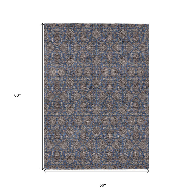 Add great coloration and comfortable texture to your space with this 3-foot x 5-foot navy blue beige and taupe floral washable indoor outdoor area rug. This rectangle shaped rug features a floral design that will work well both indoors or out. A classic shape marries with good looking design for your living room, hall, bedroom, porch, patio, or poolside. Ideal for outdoor spaces or high traffic areas with kids and pets, this rug is made from heavy duty polyester that is stain resistant to help repel water, dirt, and stains. Makes a great way to dress up your patio, porch, or poolside, but also works well as a durable and easy to maintain option in the kitchen, family room, or mudroom. 36-inch h x 60-inch w x 0.19-inch d.
