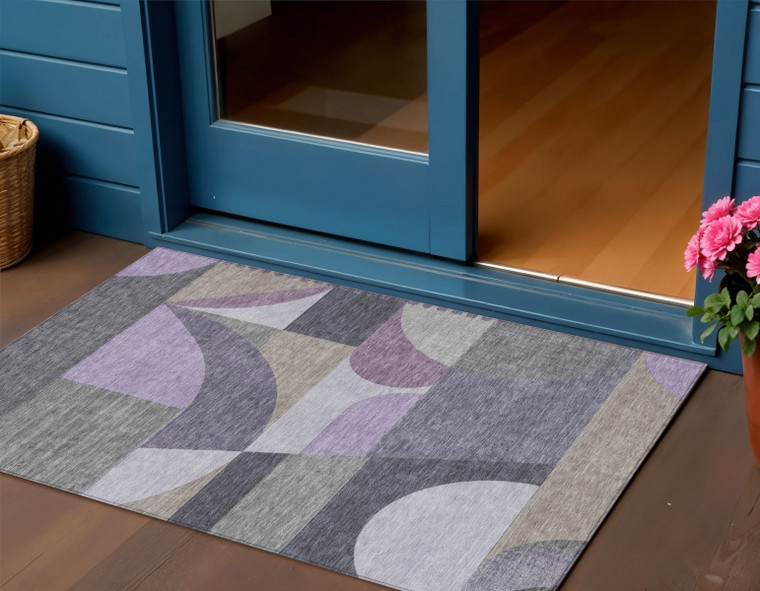 Set an inviting tone in your space with this 3-foot x 5-foot purple gray and beige geometric washable indoor outdoor area rug. This rectangle shaped rug features a geometric design that will work well both indoors or out. A classic shape marries with good looking design for your living room, hall, bedroom, porch, patio, or poolside. Ideal for outdoor spaces or high traffic areas with kids and pets, this rug is made from heavy duty polyester that is stain resistant to help repel water, dirt, and stains. Makes a great way to dress up your patio, porch, or poolside, but also works well as a durable and easy to maintain option in the kitchen, family room, or mudroom. 36-inch h x 60-inch w x 0.19-inch d.
