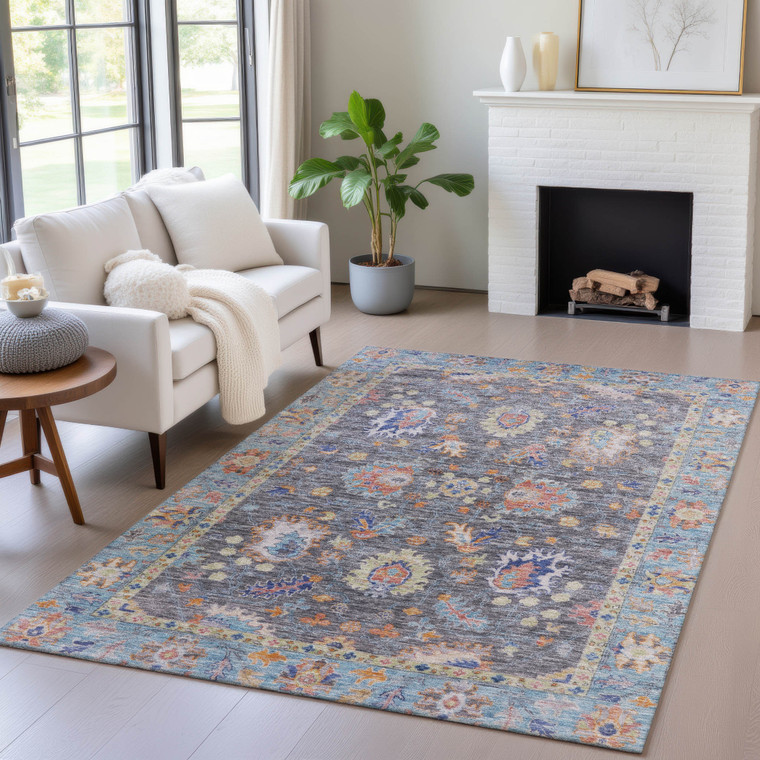 Add great coloration and comfortable texture to your space with this 5-foot x 8-foot gray and denim blue floral washable indoor outdoor area rug. This rectangle shaped rug features a floral design that will work well both indoors or out. A classic shape marries with good looking design for your living room, hall, bedroom, porch, patio, or poolside. Ideal for outdoor spaces or high traffic areas with kids and pets, this rug is made from heavy duty polyester that is stain resistant to help repel water, dirt, and stains. Versatile in use, durable, and easy to maintain, this rug is an ideal solution to add a decorative and inviting touch to your indoor or outdoor space. 60-inch h x 90-inch w x 0.19-inch d.