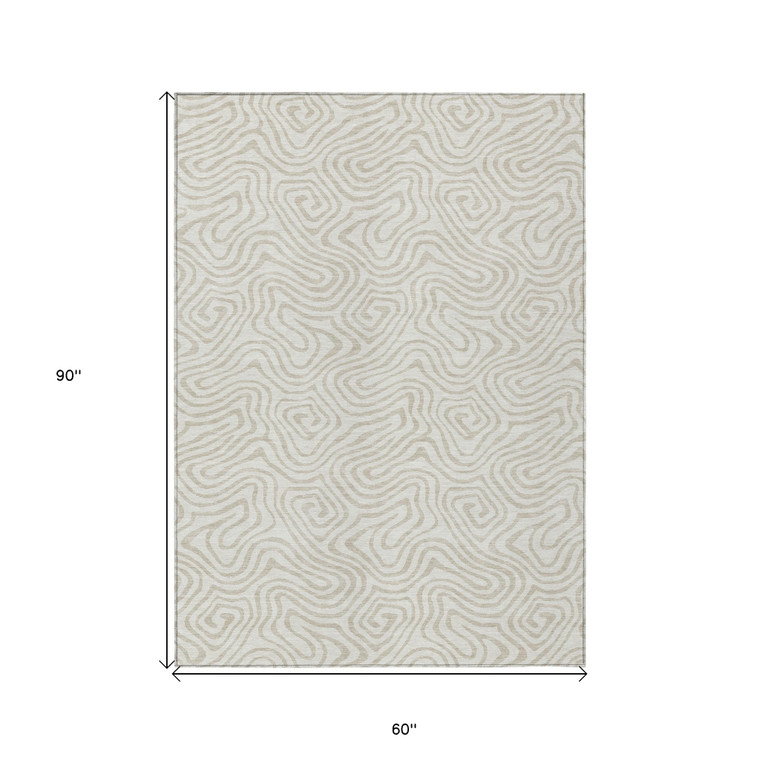 Add some artistry to your room with this 5-foot x 8-foot ivory and beige abstract washable indoor outdoor area rug. This rectangle shaped rug features a abstract design that will work well both indoors or out. A classic shape marries with good looking design for your living room, hall, bedroom, porch, patio, or poolside. Ideal for outdoor spaces or high traffic areas with kids and pets, this rug is made from heavy duty polyester that is stain resistant to help repel water, dirt, and stains. Makes a great way to dress up your patio, porch, or poolside, but also works well as a durable and easy to maintain option in the kitchen, family room, or mudroom. 60-inch h x 90-inch w x 0.19-inch d.