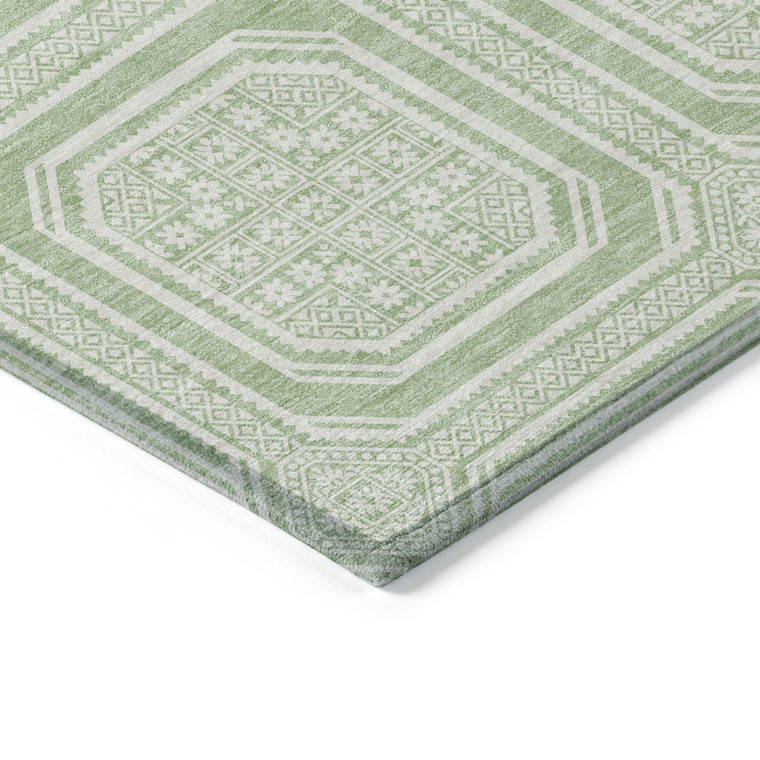This 5-foot x 8-foot mint green and ivory geometric washable indoor outdoor area rug, is a great way to add warmth to a room. This rectangle shaped rug features a geometric design that will work well both indoors or out. A classic shape marries with good looking design for your living room, hall, bedroom, porch, patio, or poolside. Ideal for outdoor spaces or high traffic areas with kids and pets, this rug is made from heavy duty polyester that is stain resistant to help repel water, dirt, and stains. Versatile in use, durable, and easy to maintain, this rug is an ideal solution to add a decorative and inviting touch to your indoor or outdoor space. 60-inch h x 90-inch w x 0.19-inch d.