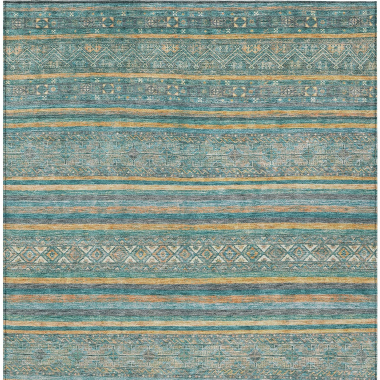 Set an inviting tone in your space with this 5-foot x 8-foot teal blue gold and taupe southwestern washable indoor outdoor area rug. This rectangle shaped rug features a southwestern design that will work well both indoors or out. A classic shape marries with good looking design for your living room, hall, bedroom, porch, patio, or poolside. Ideal for outdoor spaces or high traffic areas with kids and pets, this rug is made from heavy duty polyester that is stain resistant to help repel water, dirt, and stains. Versatile in use, durable, and easy to maintain, this rug is an ideal solution to add a decorative and inviting touch to your indoor or outdoor space. 60-inch h x 90-inch w x 0.19-inch d.