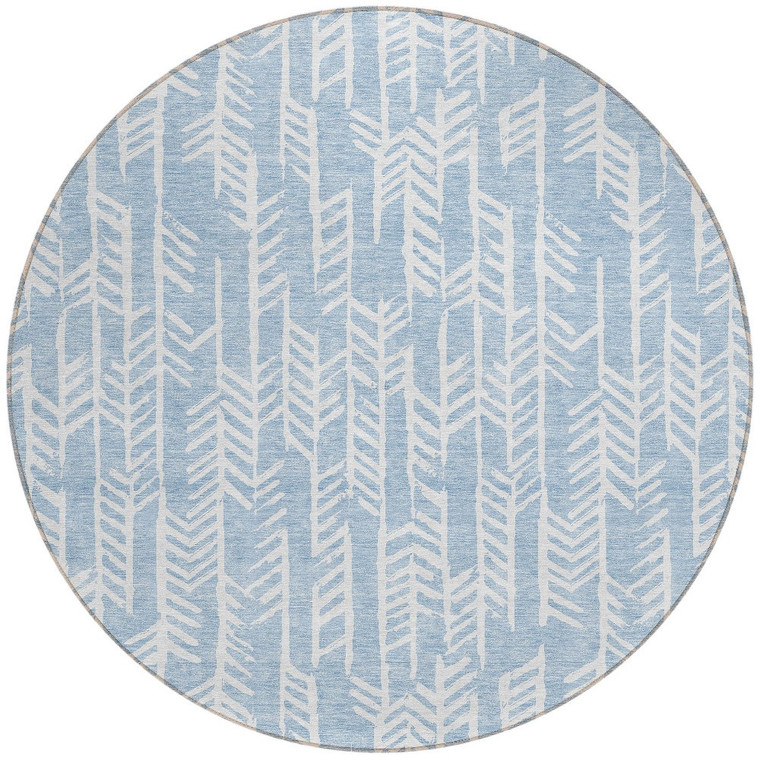 Add some artistry to your room with this 8-foot sky blue and ivory round tribal washable indoor outdoor area rug. This geometric round shaped rug features a tribal pattern in sky blue and ivory that combines a good looking print with a unique and updated shape. The mix of shape, color, and design gives this rug refreshing visual interest. Ideal for outdoor spaces or high traffic areas with kids and pets, this rug is made from heavy duty polyester that is stain resistant to help repel water, dirt, and stains. Versatile in use, durable, and easy to maintain, this rug is an ideal solution to add a decorative and inviting touch to your indoor or outdoor space. 96-inch h x 96-inch w x 0.19-inch d.