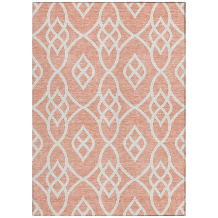 This 8-foot x 10-foot salmon and ivory trellis washable indoor outdoor area rug, is a great way to add warmth to a room. This rectangle shaped rug features a trellis design that will work well both indoors or out. A classic shape marries with good looking design for your living room, hall, bedroom, porch, patio, or poolside. Ideal for outdoor spaces or high traffic areas with kids and pets, this rug is made from heavy duty polyester that is stain resistant to help repel water, dirt, and stains. Versatile in use, durable, and easy to maintain, this rug is an ideal solution to add a decorative and inviting touch to your indoor or outdoor space. 96-inch h x 120-inch w x 0.19-inch d.