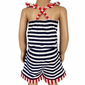 AnnLoren Little Big Girls Anchors Away Nautical Jumpsuit Summer Boutique Clothing