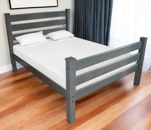 Brown and Beige Distressed Solid Wood And Faux Leather Queen Bed Frame with Nailhead Trim