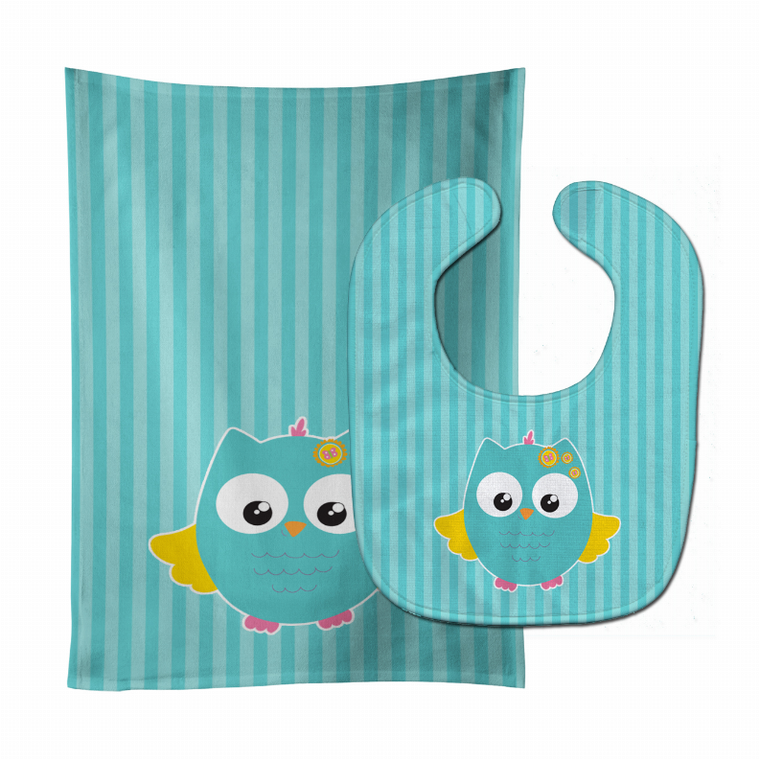 Baby Bib and Burp Cloth Set that is both Cute and Functional. Dyed plush fabric baby bib with Velcro closure. Made of ultra-smooth micro-mink polyester that reverses to 100% cotton terry loops. Measures 10 inches x 13 inches, 0.8 oz. per piece. Edges are finished with binding. Plus a Dyed plush fabric baby burp cloth. Made of ultra-smooth micro-mink polyester that reverses to 100% cotton terry loops. Measures 11 inches x 18 inches, 0.8 oz. per piece. Edges are finished with binding. Machine washable and dry on low heat. Fade resistant and stain resistant. Top fabric gets even softer after the first wash.
