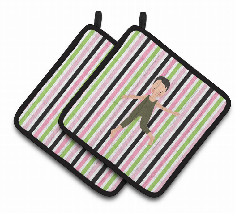 A Pair of Pot Holders to match your kitchen D?cor. Made in the USA these are thick and functional. Full color artwork D?corates the front polyester fabric of the hot pad and accented by a black trim. Use these at as a trivet for your Thanksgiving or Christmas tablescape. Filled with insulated fabric and quilted for durability. These colorful pot holders will make a great gift for your favorite home cook or executive chef. pot holder measures approximately 7 1/2 inches by 7 1/2 inches. A hanging tab is included.