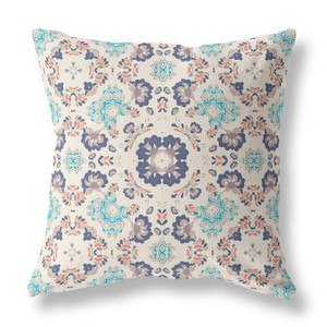 18" X 18" Off White And Blue Floral Blown Seam Suede Throw Pillow - 606114085249