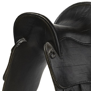 17" Black Metal And Resin English Horse Saddle Tabletop Sculpture