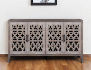 60" White Ribbed Texture Wood And Glass Sideboard with Four Doors