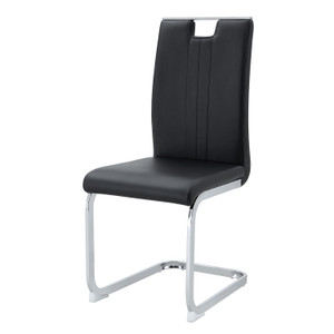 Set of Four Black and Silver Faux Leather and Metal Dining Side Chairs - Black, Silver