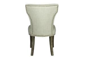 Set of Two Light Gray and White Upholstered Linen And Solid Wood Open Back Dining Arm Chairs