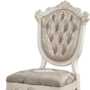 Set of Two Tufted Rose Gold and Pearl Upholstered Faux Leather And Solid Wood Dining Side Chairs