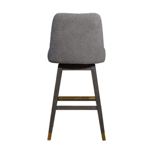 30" Gray and Gold Fabric and Stainless Steel Low Back Bar Height Swivel Bar Chair