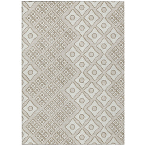 10' X 14' Beige And Ivory Geometric Washable Indoor Outdoor Area Rug