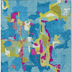 10' X 14' Aqua And Teal Blue Abstract Washable Indoor Outdoor Area Rug - Aqua, Teal Blue