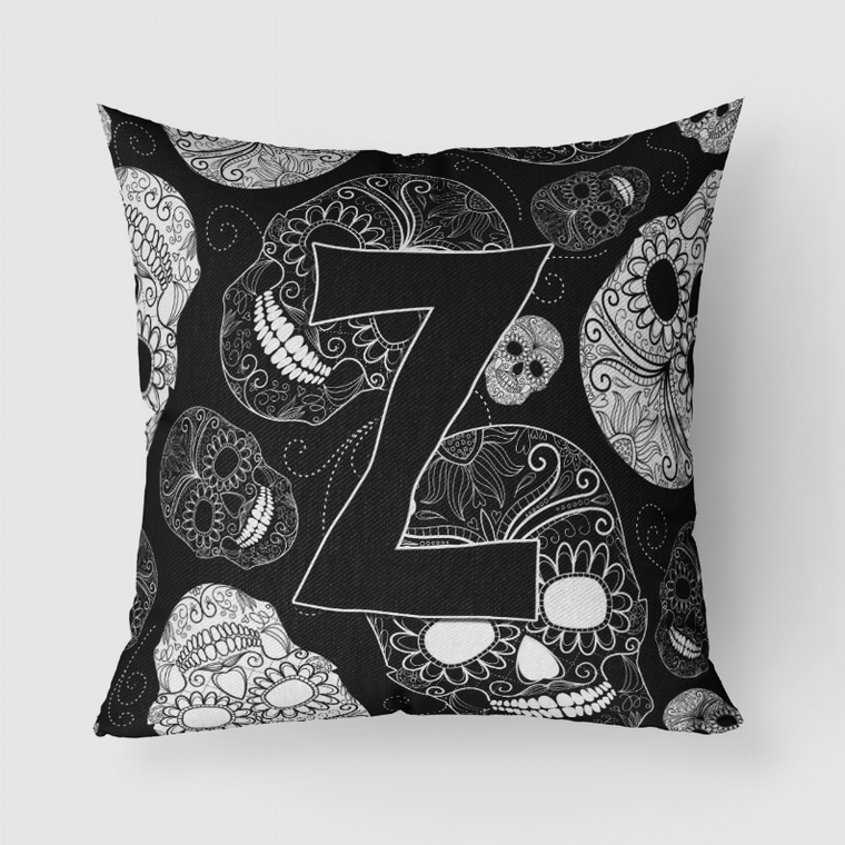 Letter Day of the Dead Skulls Black Fabric Decorative Pillow - 615872981410