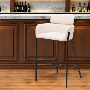 30" Beige And Black Fabric And Steel Bar Height Bar Chair - 606114991779