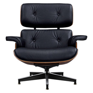 27" Black and Light Brown Tufted Genuine Leather Swivel Lounge Chair With Ottoman