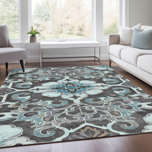 3' X 5' Sage And Artichoke Green Abstract Washable Indoor Outdoor Area Rug