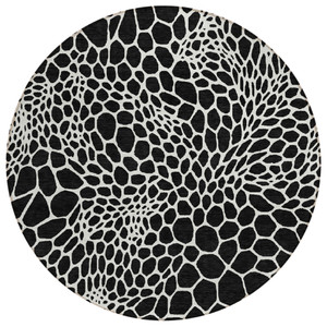 8' Pewter Charcoal And Gray Round Geometric Washable Indoor Outdoor Area Rug