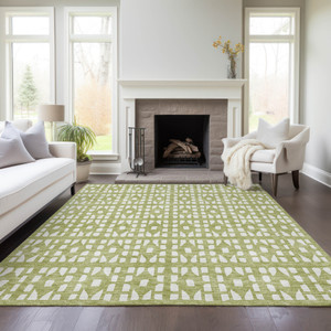 8' X 10' Aqua And Ivory Geometric Washable Indoor Outdoor Area Rug