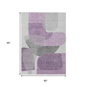 5' X 8' Purple And Gray Abstract Washable Indoor Outdoor Area Rug - Purple, Gray