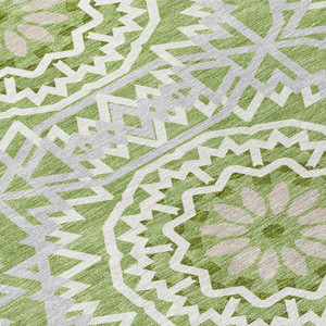 8' X 10' Artichoke Green Lavender And Ivory Abstract Washable Indoor Outdoor Area Rug