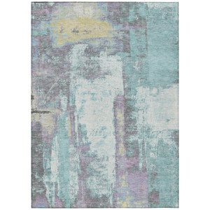 5' X 8' Artichoke Green Gray And Tan Damask Washable Indoor Outdoor Area Rug