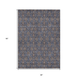 5' X 8' Teal Blue Aqua And Charcoal Southwestern Washable Indoor Outdoor Area Rug