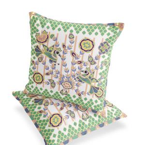 Set of Two 16" X 16" Green and White Peacock Blown Seam Floral Indoor Outdoor Throw Pillow Polyester Decor