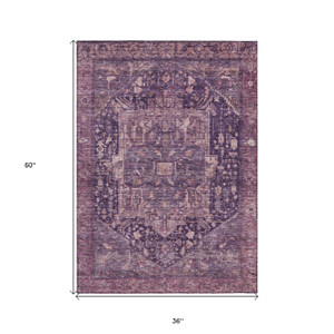 3' X 5' Taupe Navy Blue And Denim Blue Southwestern Washable Indoor Outdoor Area Rug