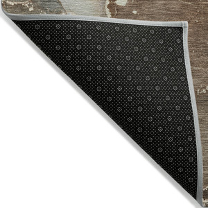 5' X 8' Black Taupe And Beige Floral Washable Indoor Outdoor Area Rug