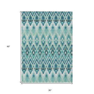 3' X 5' Blue Gray And Silver Abstract Washable Indoor Outdoor Area Rug