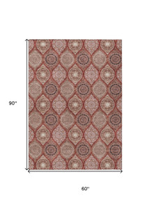 5' X 8' Orange Beige And Gray Floral Medallion Washable Indoor Outdoor Area Rug