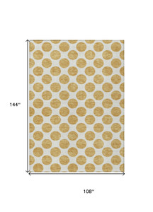 9' X 12' Gold And Ivory Polka Dot Washable Indoor Outdoor Area Rug