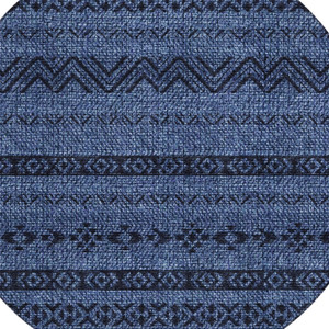 8' Navy Blue And Black Round Southwestern Washable Indoor Outdoor Area Rug
