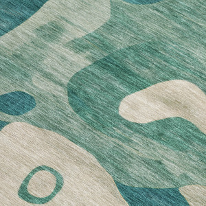 8' X 8' Blue and Gray Round Abstract Washable Indoor Outdoor Area Rug
