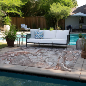 10' X 14' Mauve Blue And Gold Striped Washable Indoor Outdoor Area Rug