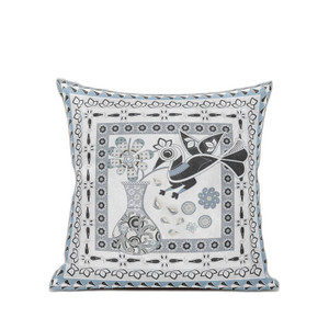 20" x 20" Blue and White Butterfly Blown Seam Floral Indoor Outdoor Throw Pillow