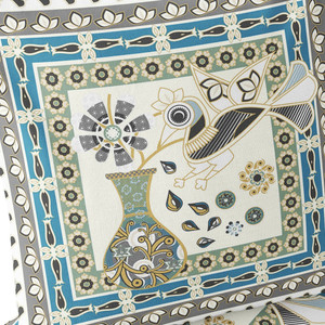 Set of Two 16" X 16" Blue and White Elephant Eclectic Indoor Outdoor Throw Pillow