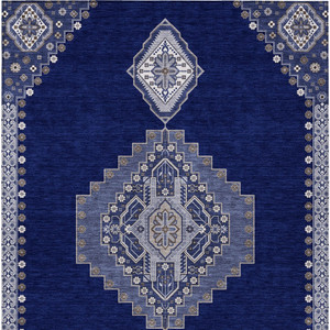 10' X 14' Navy Blue Gray And Brown Oriental Washable Indoor Outdoor Area Rug