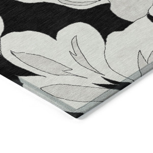 10' X 14' Black Gray And Silver Floral Washable Indoor Outdoor Area Rug