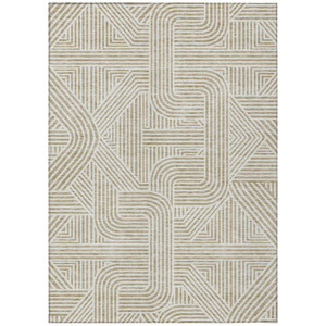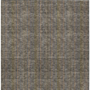 10' X 14' Taupe Denim Blue And Olive Green Striped Washable Indoor Outdoor Area Rug