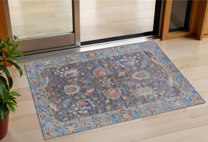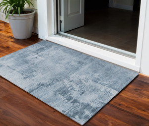 3' X 5' Denim Blue And Silver Abstract Washable Indoor Outdoor Area Rug